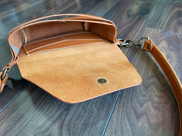 Want more security? Slide the flap under the hand punched strap, pull until the magnet catches, all secure.